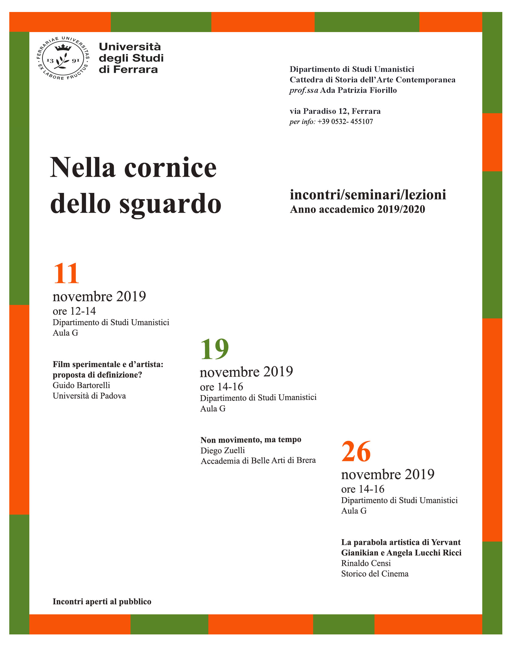 Ciclo di incontri, seminari, lezioni organizzato dalla Cattedra di Storia dell'Arte Contemporanea