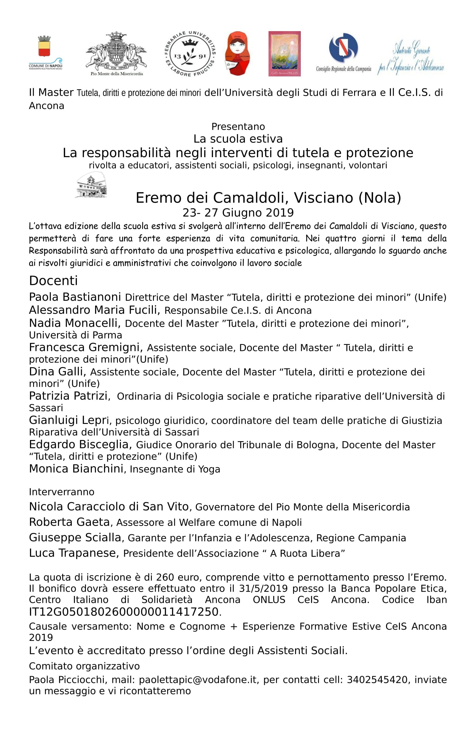 Causale per il versamento per esperienze formative estive CeIS Ancona 2019 + Nome e Cognome