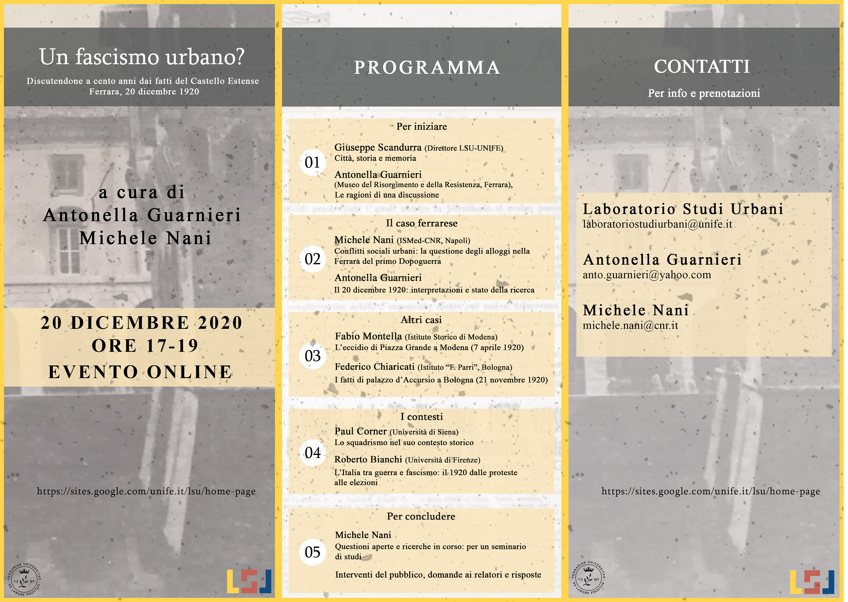 Incontro organizzato da Laboratorio Studi Urbani (Università di Ferrara), Antonella Guarnieri (Museo del Risorgimento e della Resistenza), Michele Nani (ISMed-CNR, Napoli).