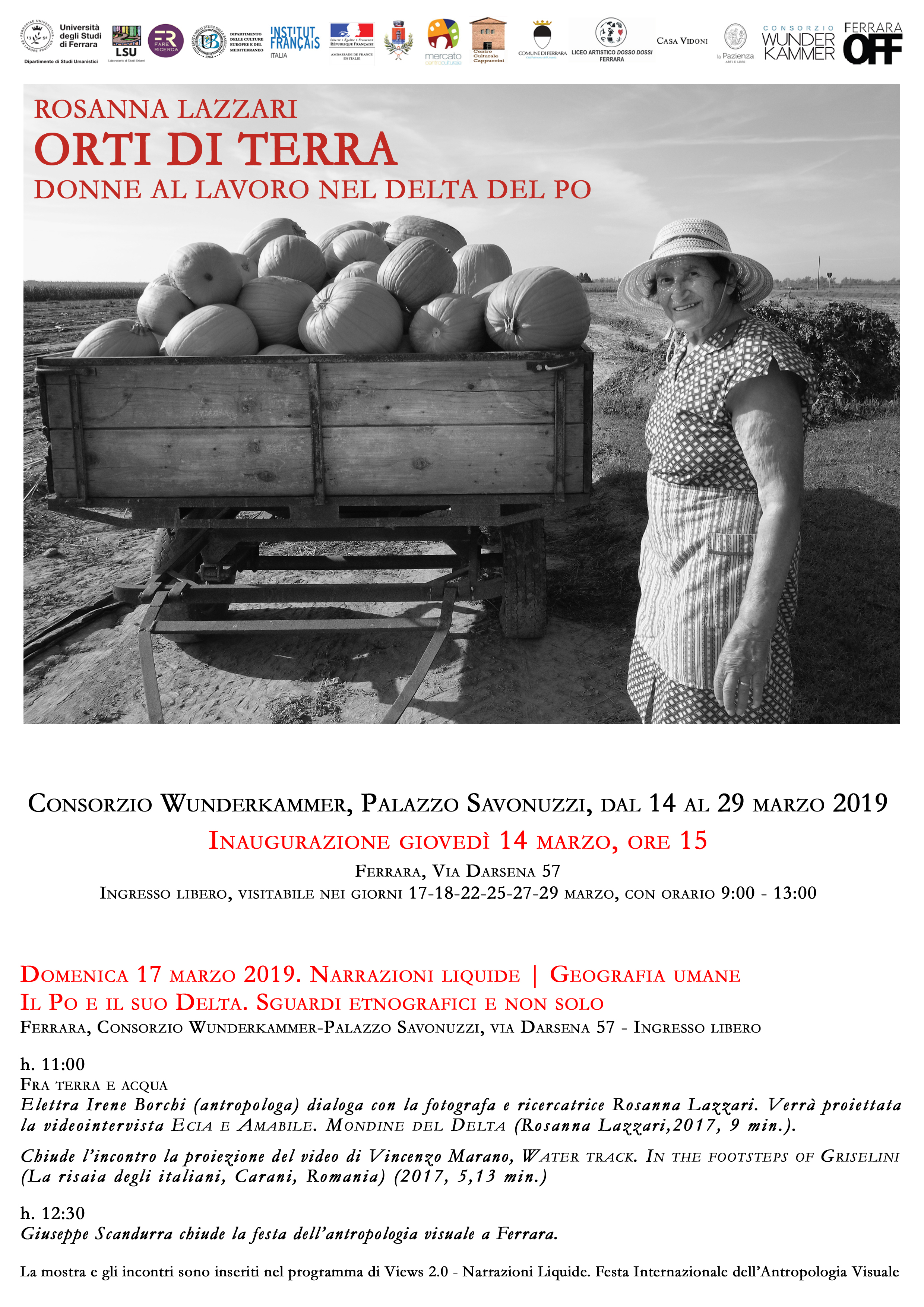 Nell'ambito della Festa Internazionale dell'Antropologia Visuale (alla seconda edizione) saranno aperte fino alla fine del mese, entrata gratuita, le seguenti mostre alla scoperta del Delta e del territorio ferrarese: